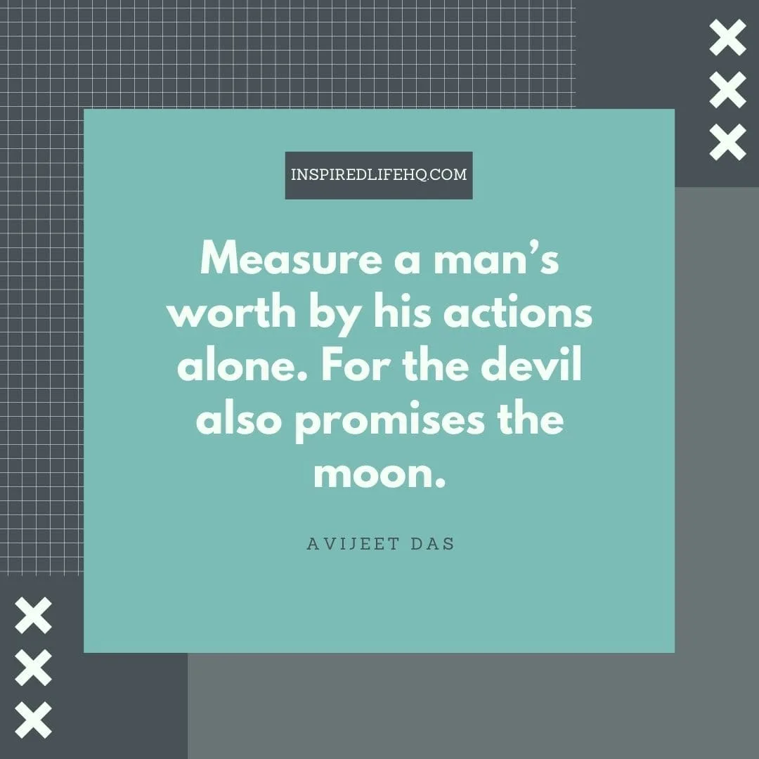 13. “Measure a man’s worth by his actions alone. For the devil also promises the moon.” – Avijeet Das