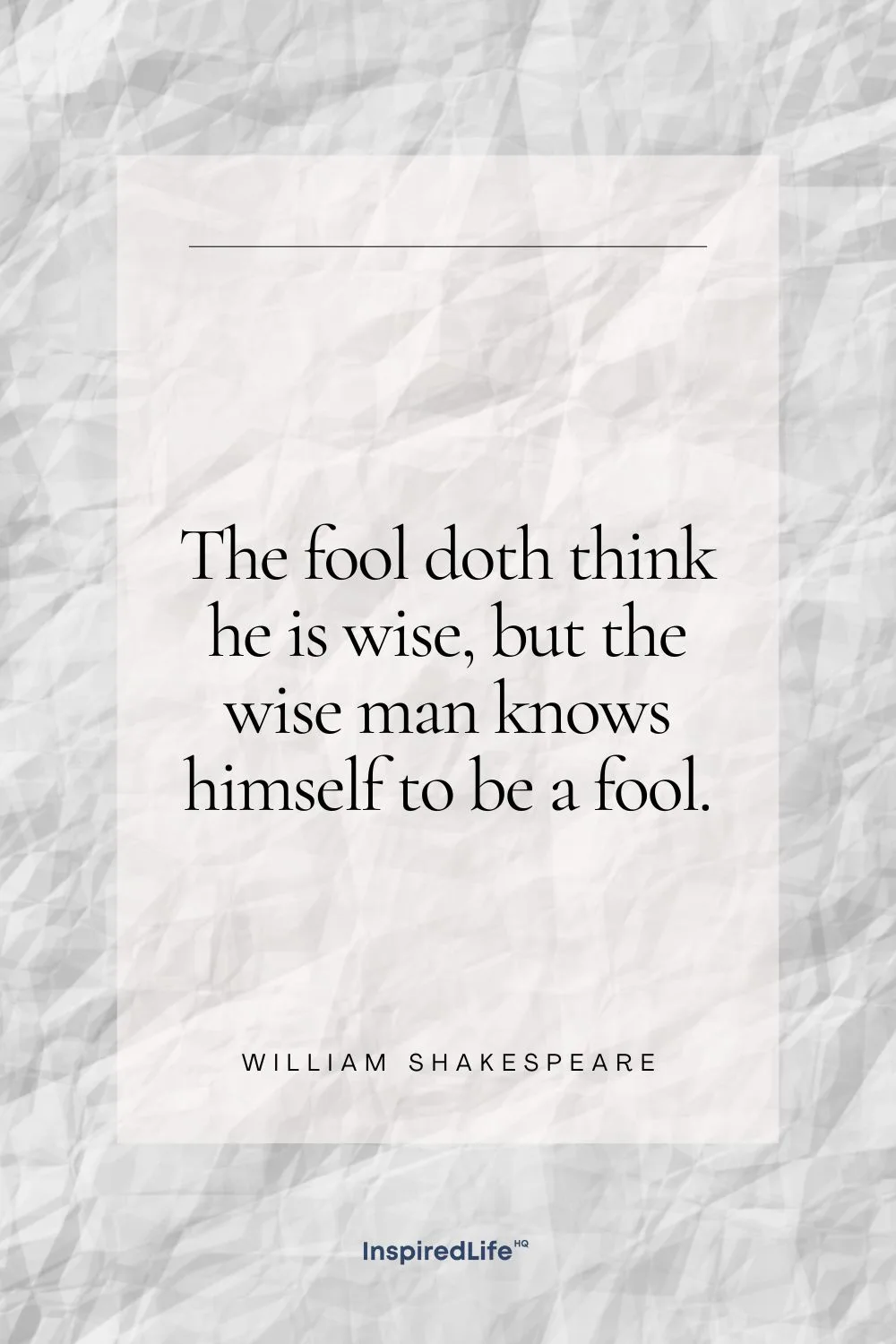 43. “The fool doth think he is wise, but the wise man knows himself to be a fool.” – William Shakespeare