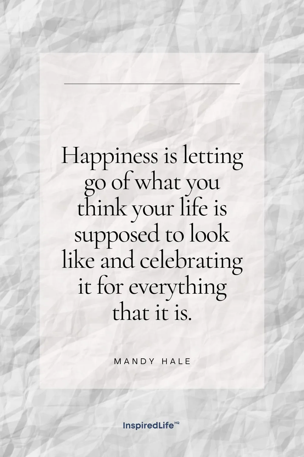 59. “Happiness is letting go of what you think your life is supposed to look like and celebrating it for everything that it is.” – Mandy Hale