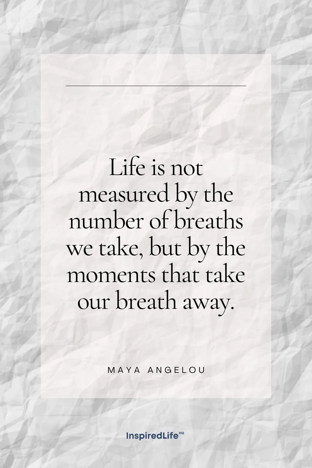 65. “Life is not measured by the number of breaths we take, but by the moments that take our breath away.” – Maya Angelou