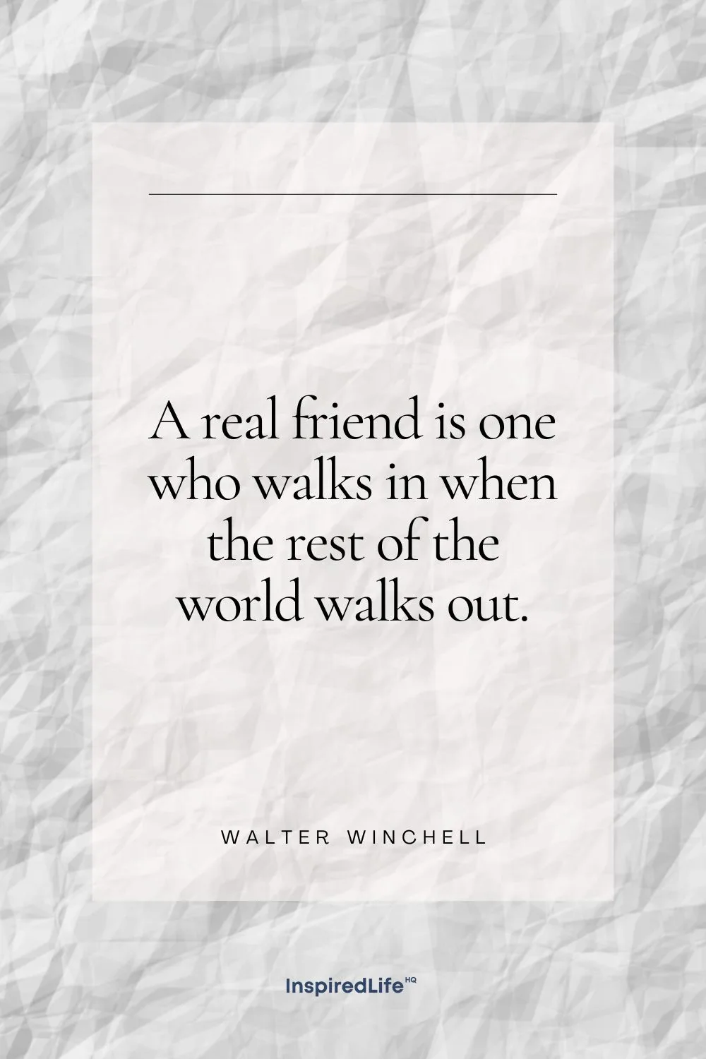 82. “A real friend is one who walks in when the rest of the world walks out.” – Walter Winchell