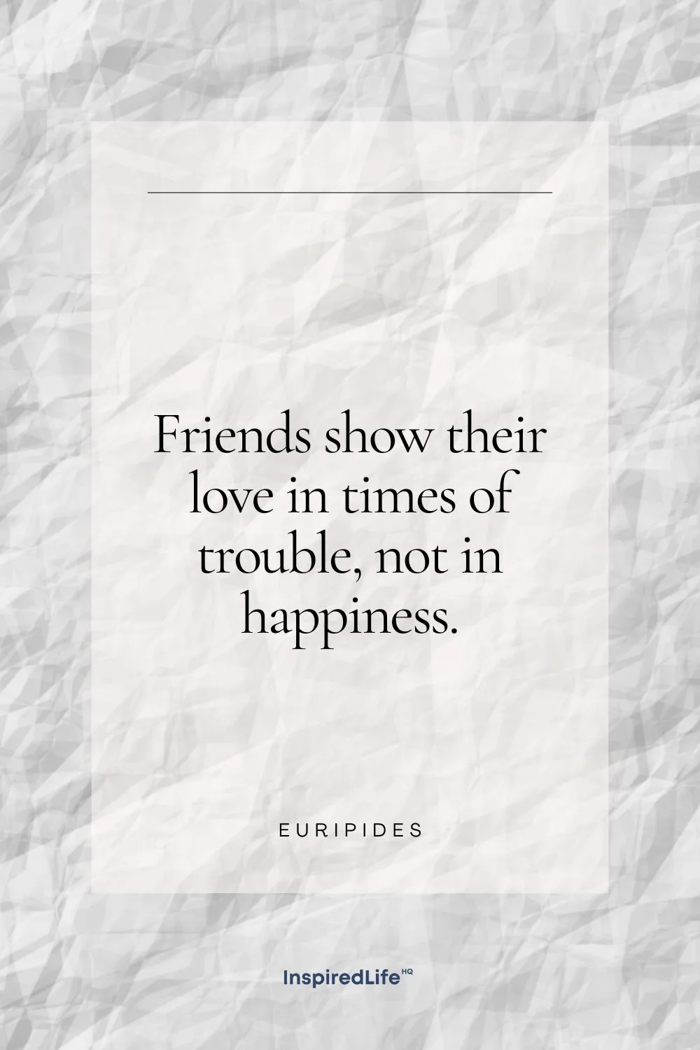 89. “Friends show their love in times of trouble, not in happiness.” – Euripides