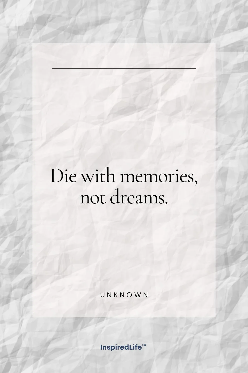 92. “Die with memories, not dreams.” – Unknown