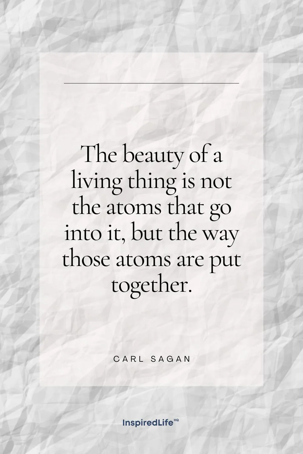15. “The beauty of a living thing is not the atoms that go into it, but the way those atoms are put together.” – Carl Sagan