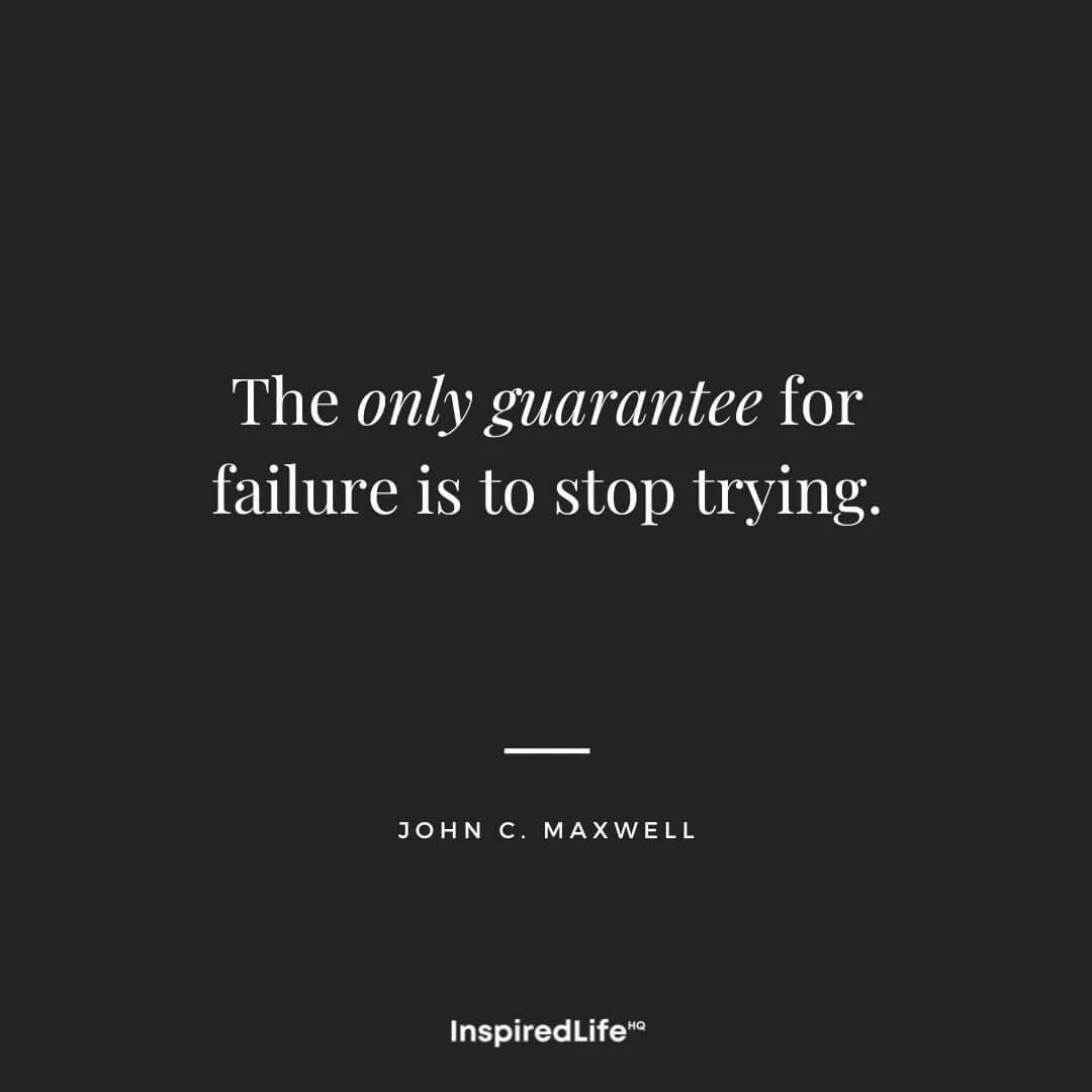 124. “The only guarantee for failure is to stop trying.” – John C. Maxwell