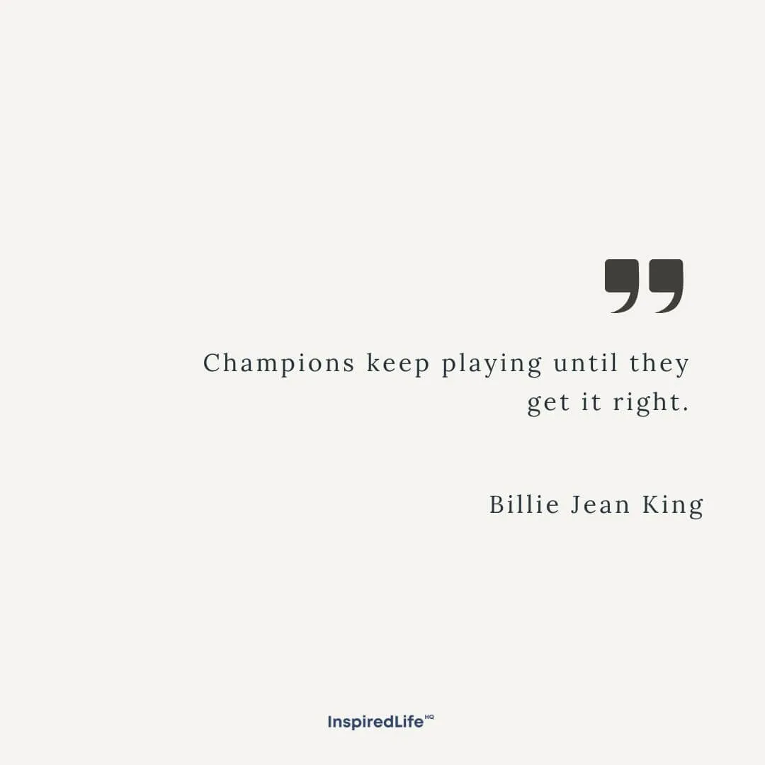 22. “Champions keep playing until they get it right.” – Billie Jean King