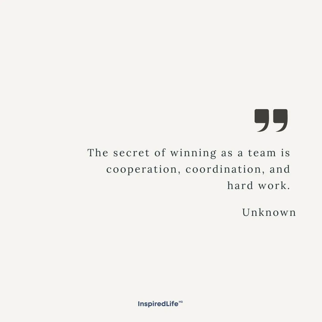 50. “The secret of winning as a team is cooperation, coordination, and hard work.” – Unknown