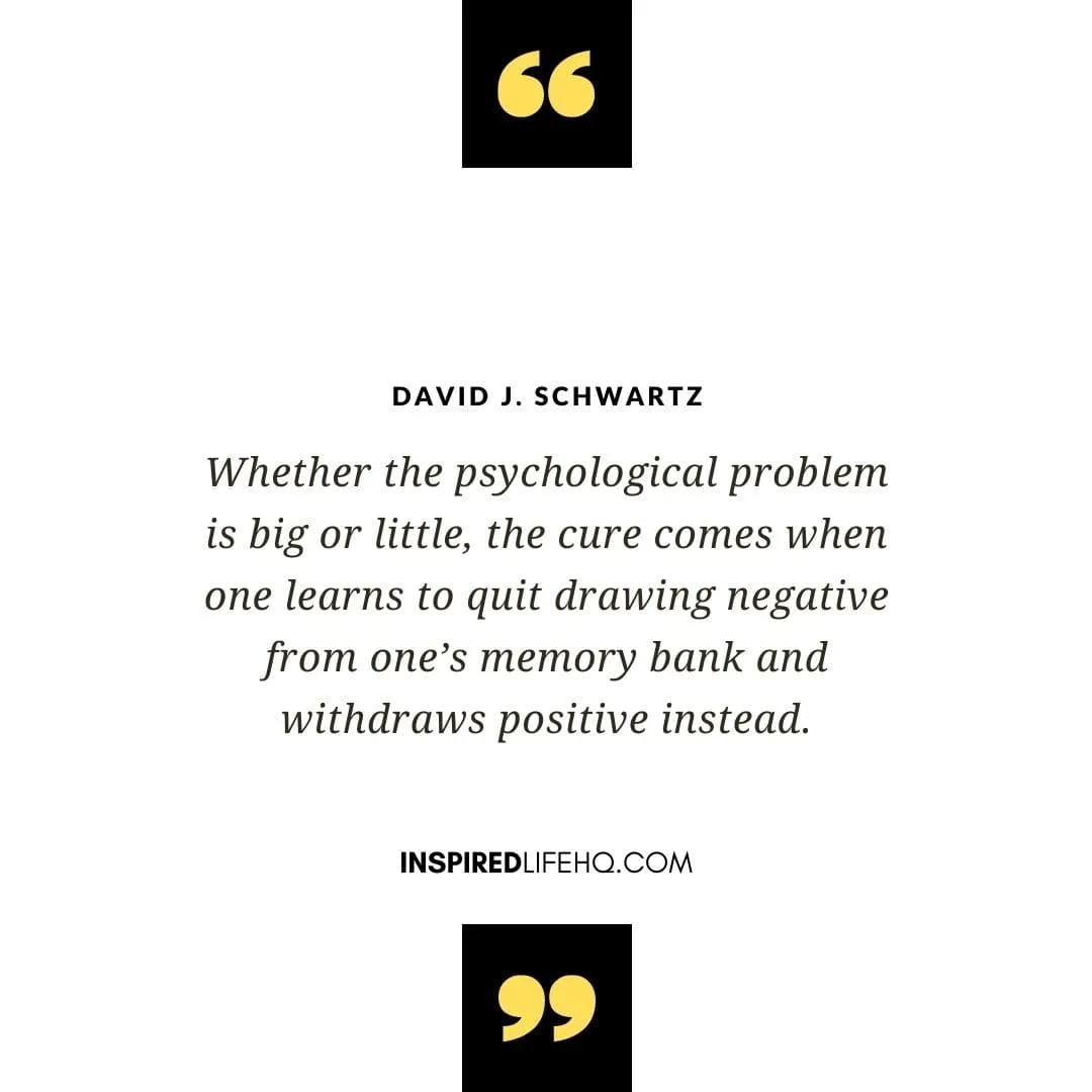2. “Whether the psychological problem is big or little, the cure comes when one learns to quit drawing negative from one’s memory bank and withdraws positive instead.” – David J. Schwartz, The Magic of Thinking Big