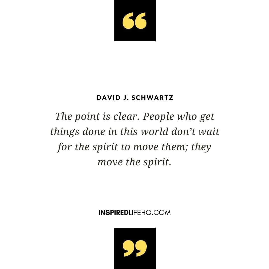13. “The point is clear. People who get things done in this world don’t wait for the spirit to move them; they move the spirit.” – David J. Schwartz, The Magic of Thinking Big