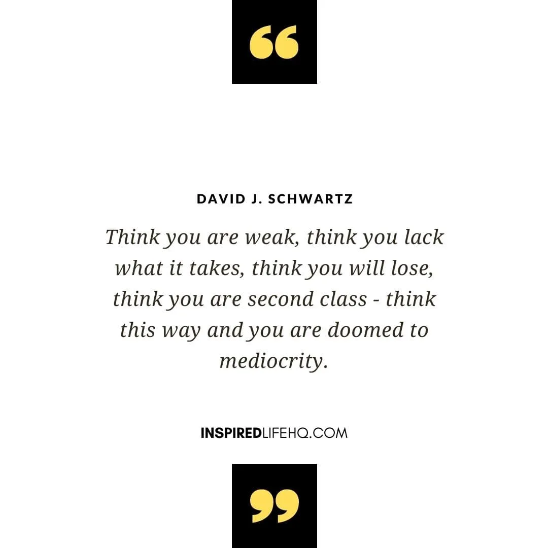 19. “Think you are weak, think you lack what it takes, think you will lose, think you are second class – think this way and you are doomed to mediocrity.” – David J. Schwartz, The Magic of Thinking Big