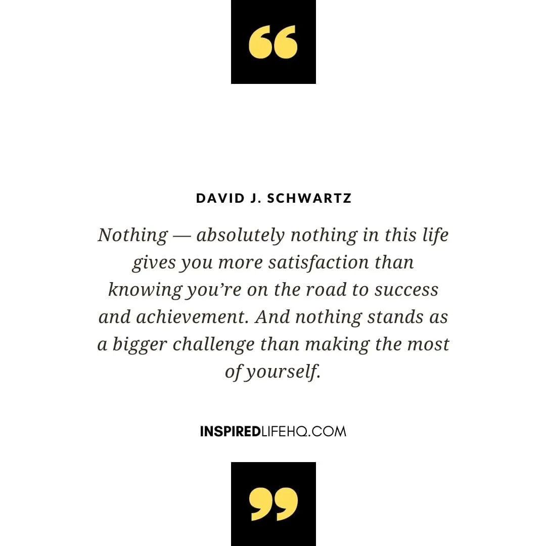 6. “Nothing — absolutely nothing in this life gives you more satisfaction than knowing you’re on the road to success and achievement. And nothing stands as a bigger challenge than making the most of yourself.” – David J. Schwartz, The Magic of Thinking Big