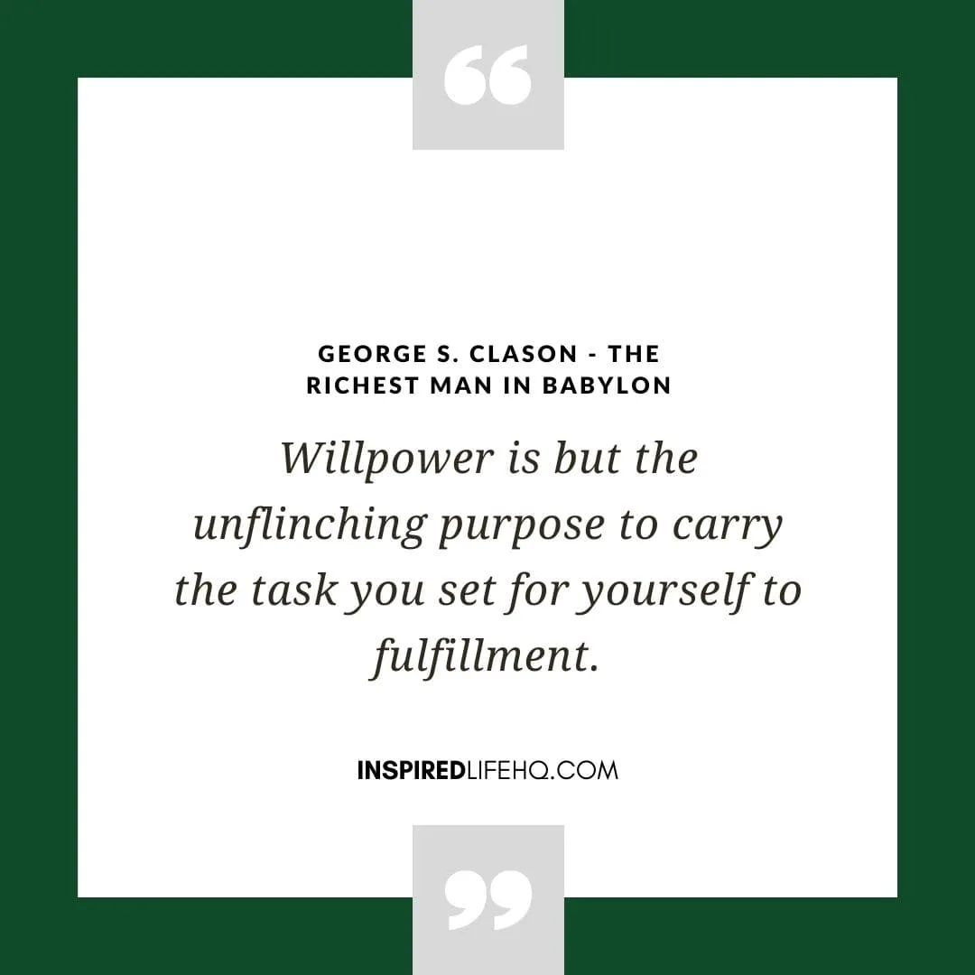 7. “Willpower is but the unflinching purpose to carry the task you set for yourself to fulfillment.” – George S. Clason – The Richest Man In Babylon