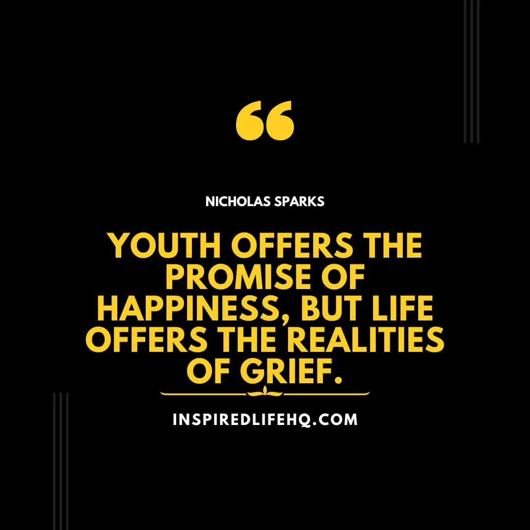 38. “Youth offers the promise of happiness, but life offers the realities of grief.” – Nicholas Sparks